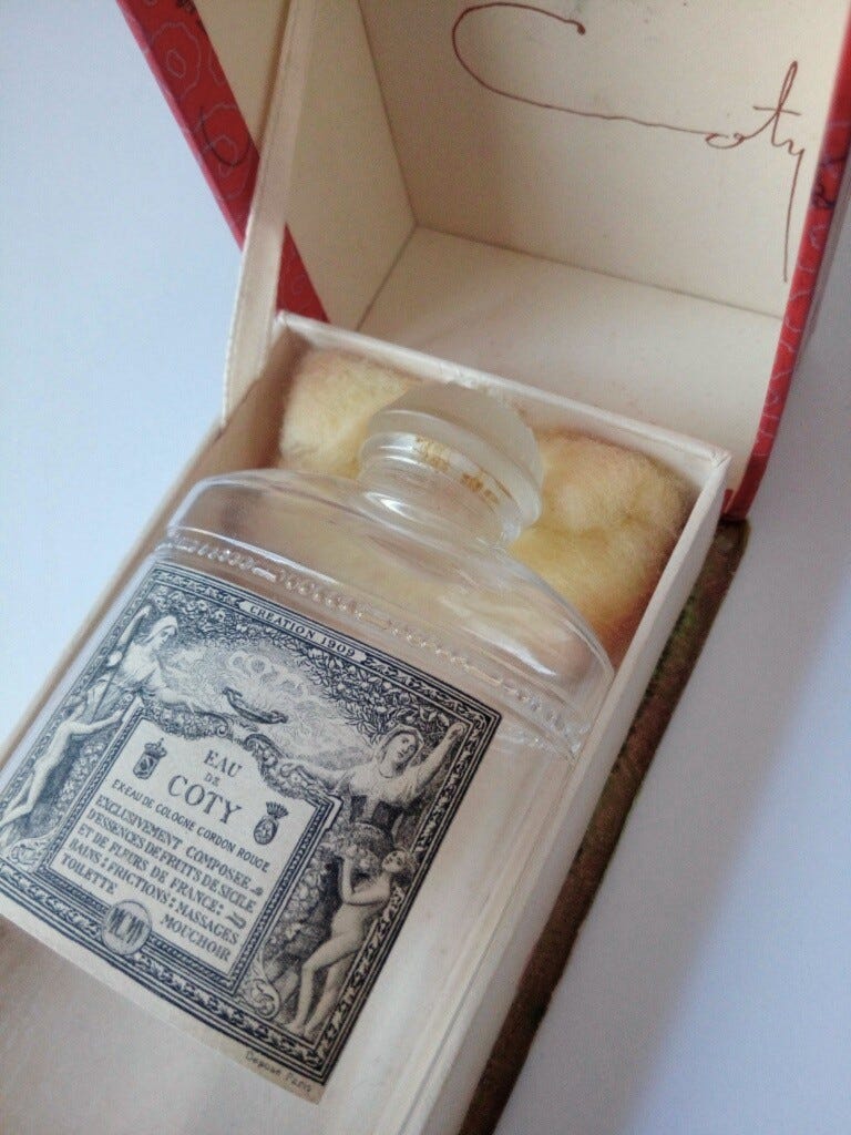 By the time Coty faced down this idea in 1909, the schism between ‘acceptable’ and ‘transgressive’ perfume had been around for two centuries. With Eau de Coty he put paid to the idea with a stylish combination of ‘chaste Cologne’ and ‘prostitute Patchouli’; a perfume that allowed women to smell fresh and sensual without damaging their reputation.